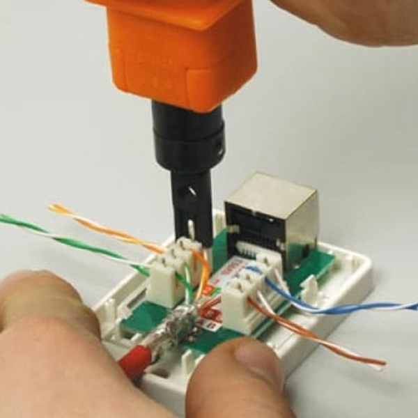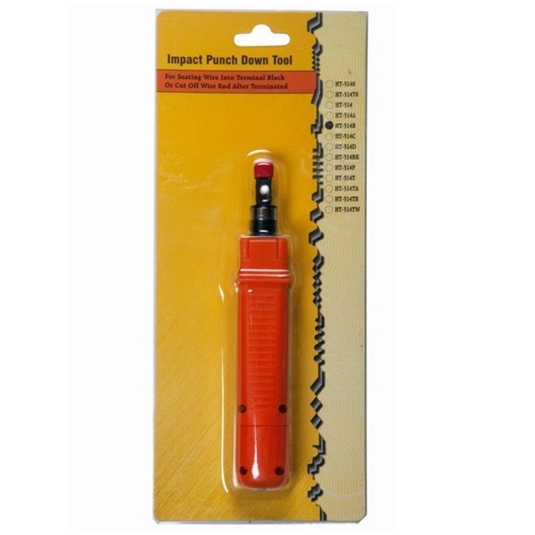 Инструмент для заделки витой пары 110 HT-3140 (TL-314B) (HT-314A) REXANT предназначен для заделки кабеля на кроссах, патч-панелях, розетках и модулях, заделка контактов 110-го типа. Инструмент выполнен из качественной инструментальной стали, есть возможность быстрой замены ножа (в комплекте двухсторонний с отрезкой). В ручке инструмента имеется отдел для хранения сменных лезвий. Заделка имеет подпружиненный суппорт крепления лезвия. Удобная пластиковая рукоятка сделает эксплуатацию инструмента более комфортной и убережет от соскальзывания из рук.