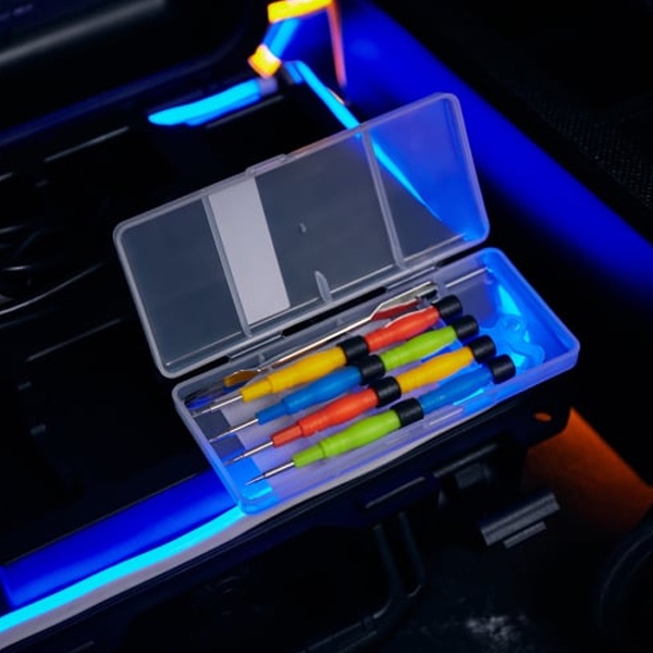 Набор поставляется в пластиковом боксе, удобен в использовании и транспортировке, содержит 9 предметов: