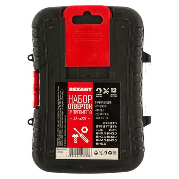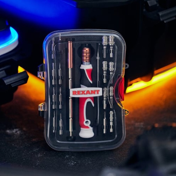 Набор отверток 19 предметов REXANT предназначен для выполненияпрецизионных работ в электронике и электромеханике. Прекрасно подойдет для ремонта мобильных телефонов, планшетов, электронных книг, часов, ноутбуков и другой техники. Биты набора выполнены из хромованадиевой стали. Эргономичная двухкомпонентная рукоятка отвертки делает работу синструментом легкой и удобной. Специальный зажим отвертки обеспечивает быструю замену и надежную фиксацию насадок.