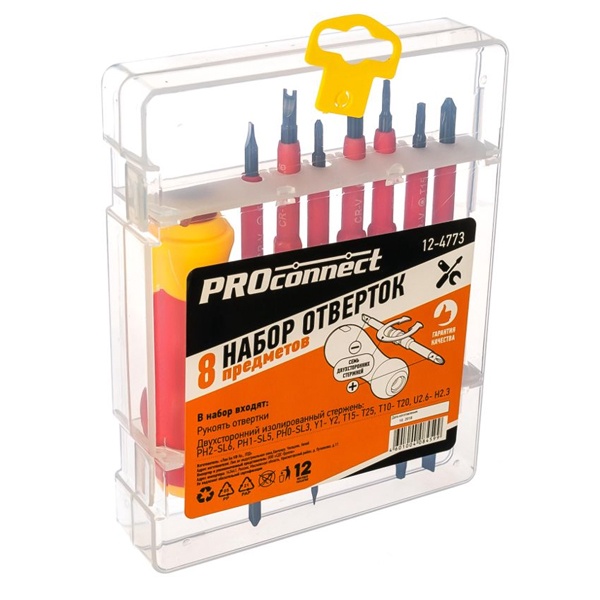 Набор отверток из 8 предметов ПРОконнект, рукоятка и 7 двухсторонних стержней в кейсе 12-4773