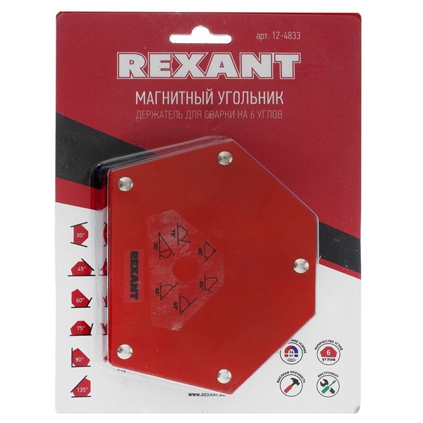 Магнитный угольник держатель для сварки на 6 углов усилие 34 кг REXANT предназначен для фиксации металлических деталей при сварке, пайке и сборке конструкций. Применяется для работы с круглыми и прямоугольными трубами, полосами, уголками, профилями, листовым, сплошным и другими видами металла. Угольник быстро и надежно соединяет детали, сокращает время работы, облегчает монтаж и заменяет громоздкие зажимы и неудобные струбцины.