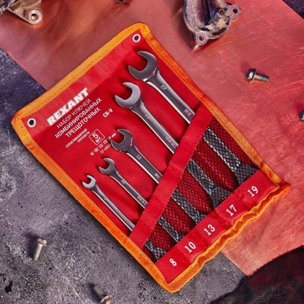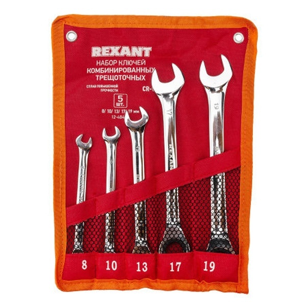 Набор из 5 комбинированных, трещоточных, хромированных ключей, размером 8-19 мм 12-4841-1