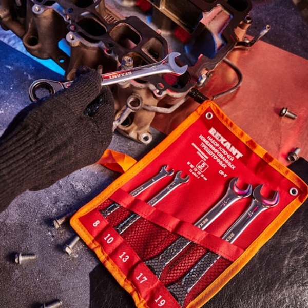 Набор комбинированных трещоточных ключей предназначен для монтажа и демонтажа резьбовых соединений. Покрытие хромоникелем продлевает срок службы и обеспечивает усиленную защиту от коррозии.
