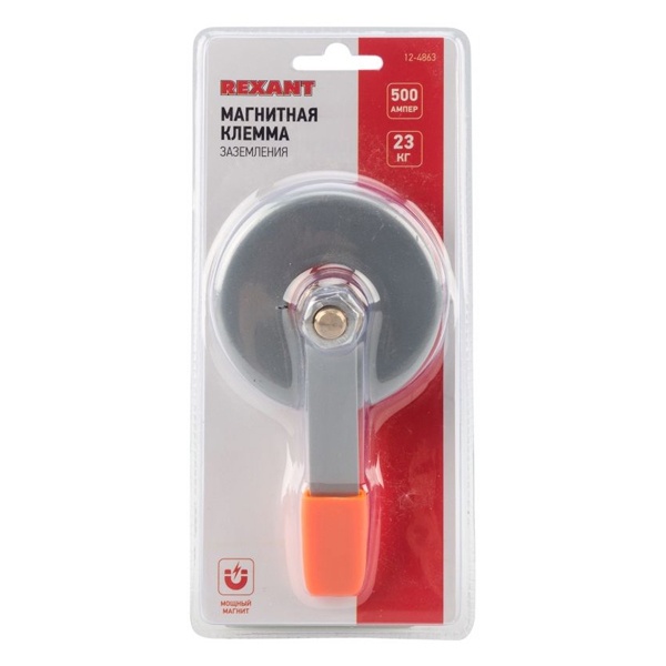 Магнитная клемма заземления 500 A, Рексант, удерживающее усилие 23 кг 12-4863