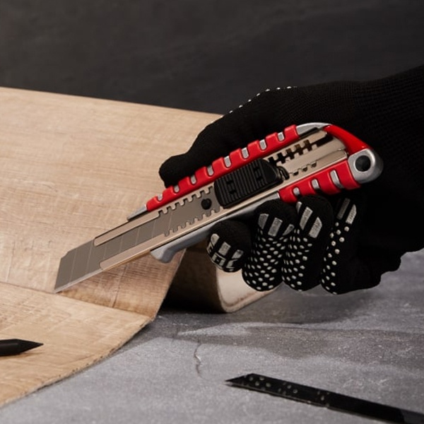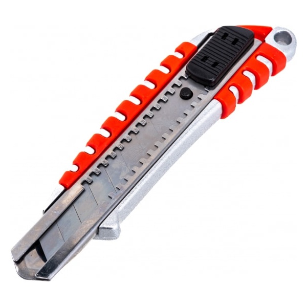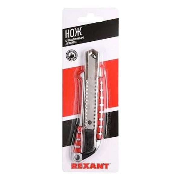 Нож с выдвижным лезвием REXANT — отличный помощник для реза различных материалов: пластика, линолеума, кровельных материалов, гипсокартонных и гипсолитовых плит, бумаги, картона.Корпус ножа металлический с обрезиненной рукояткой, что позволяет прикладывать значительное усилие при резке и обеспечивает долгий срок службы. Лезвие изготовлено из стали У8А, фиксируется автоматически. Замена лезвия осуществляется вручную.