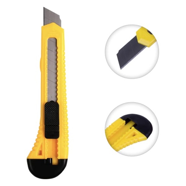 Нож с выдвижным лезвием REXANT — отличный помощник для реза различных материалов: пластика, линолеума, кровельных материалов, гипсокартонных и гипсолитовых плит, бумаги, картона. Корпус ножа металлический с обрезиненной рукояткой, что позволяет прикладывать значительное усилие при резке и обеспечивает долгий срок службы. Лезвие изготовлено из стали У8А, фиксируется автоматически. Замена лезвия осуществляется вручную.