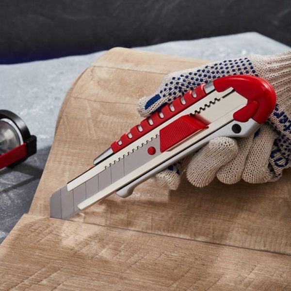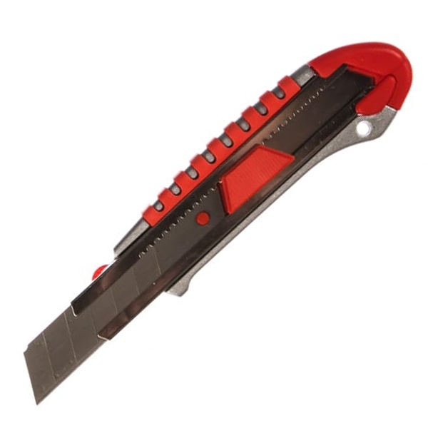 Нож с выдвижным лезвием REXANT отличный помощник для реза различных материалов: пластика, линолеума, кровельных материалов, гипсокартонных и гипсолитовых плит, бумаги, картона. Корпус ножа металлический с обрезиненной рукояткой, что позволяет прикладывать значительное усилие при резке, и обеспечивает долгий срок службы.