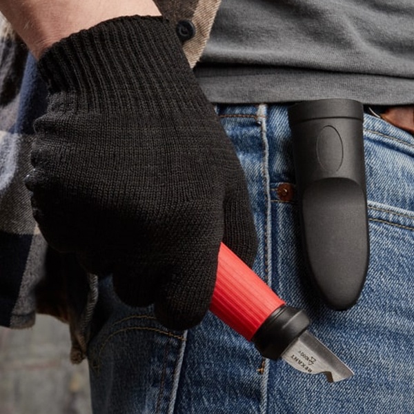 - Усиленное лезвие толщиной 2 мм со специальной двухсторонней заточкой для работы с толстыми материалами