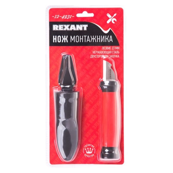 Нож монтажника нержавеющая сталь двухсторонняя заточка лезвие 33мм Rexant 12-4931