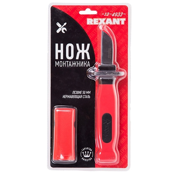 Нож монтажника нержавеющая сталь лезвие 50мм Rexant 12-4933