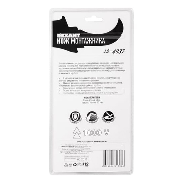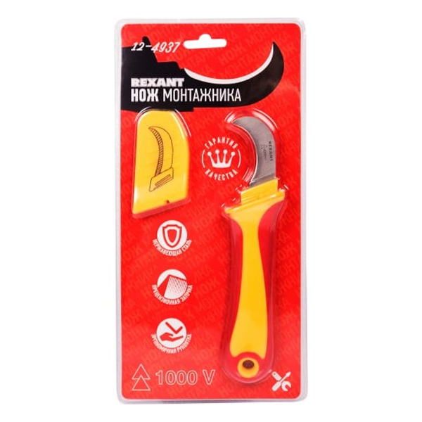Нож монтажника из нержавеющей стали с изогнутым лезвием Rexant 12-4937 12-4937