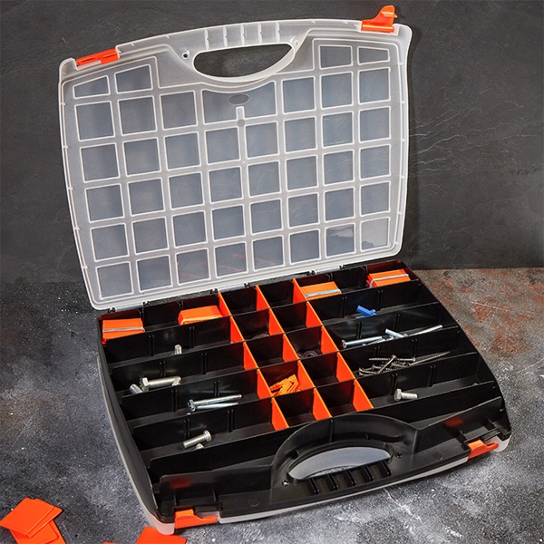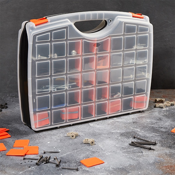 Ящик пластиковый универсальный Proconnect двухсторонний 425х330х85 мм — отличное решение для хранения ручного инструмента, разъемов, расходных материалов, крепежа и рыболовных снастей.