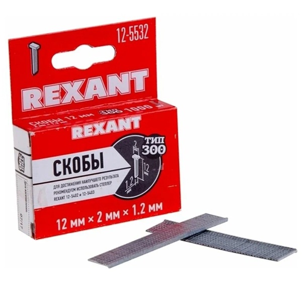 Скобы штифт-отделочные 2 х 1,2 x 12мм, 1000шт Рексант 12-5532.