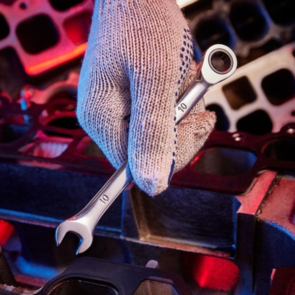 Ключ комбинированный трещоточный предназначен для монтажа и демонтажа резьбовых соединений. Хром-ванадиевый сплав (Chrome Vanadium) CrV, из которого изготовлен инструмент, обладает такими свойствами, как прочность, жесткость и устойчивость к износу. Во время прокаливания он менее подвержен деформациям и потере первоначальной формы, чем другие типы инструментальной стали.