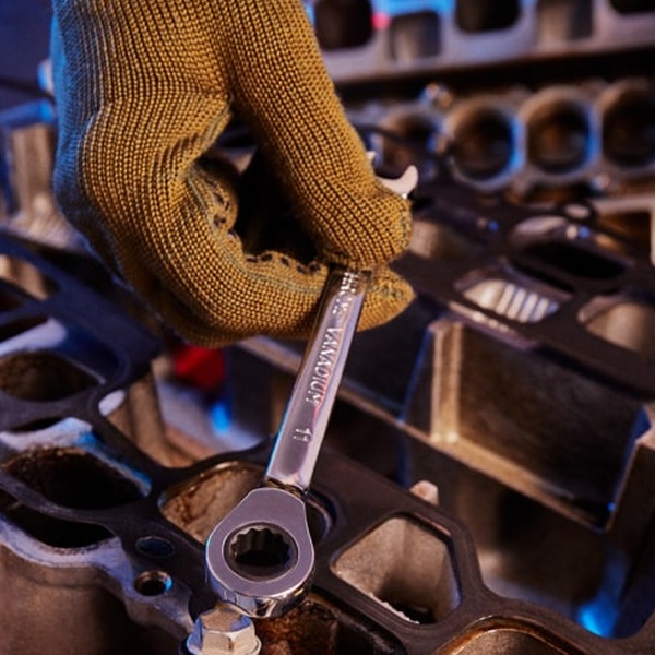 Ключ комбинированный трещоточный предназначен для монтажа и демонтажа резьбовых соединений. Хром-ванадиевый сплав (Chrome Vanadium) CrV, из которого изготовлен инструмент, обладает такими свойствами, как прочность, жесткость и устойчивость к износу. Во время прокаливания он менее подвержен деформациям и потере первоначальной формы, чем другие типы инструментальной стали.