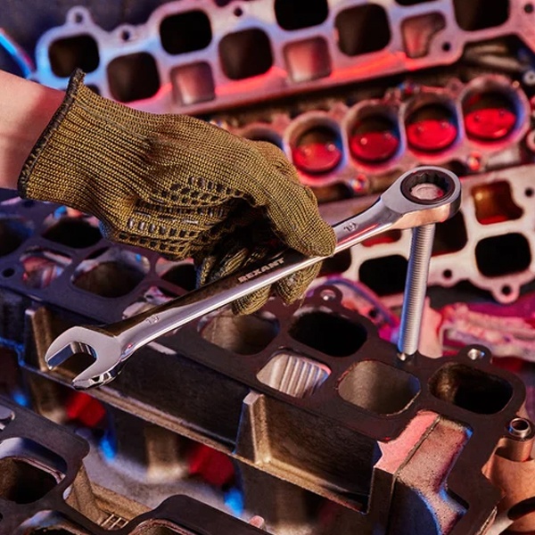 Ключ комбинированный трещоточный предназначен для монтажа и демонтажа резьбовых соединений. Хром-ванадиевый сплав (Chrome Vanadium) CrV, из которого изготовлен инструмент, обладает такими свойствами, как прочность, жесткость и устойчивость к износу. Во время прокаливания он менее подвержен деформациям и потере первоначальной формы, чем другие типы инструментальной стали.