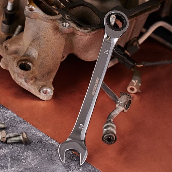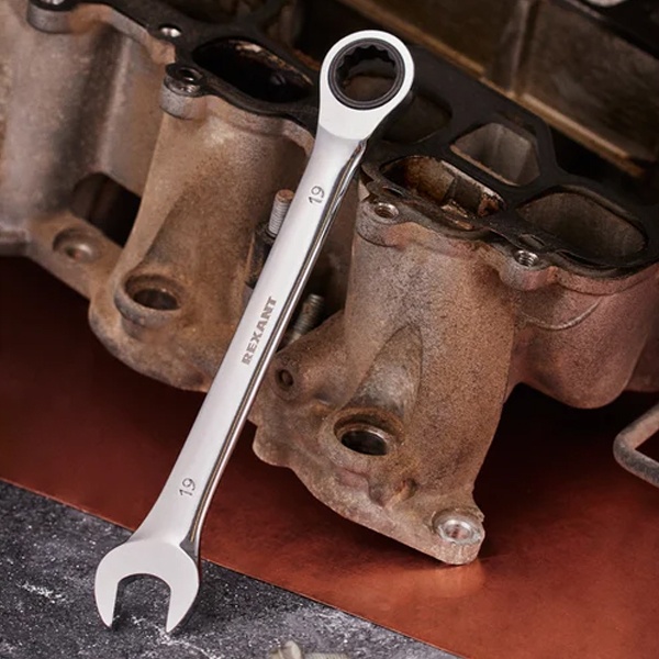 Ключ комбинированный трещоточный REXANT 19 мм, CrV, зеркальный хром