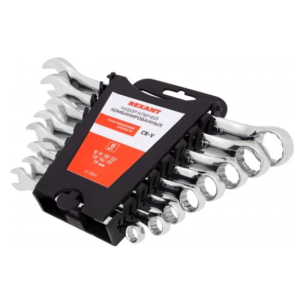 Набор из 8 комбинированных, хромированных ключей, размером 8-19 мм 12-5841