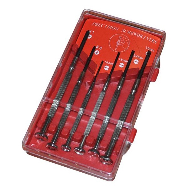 Набор часовых отверток (6 предметов) ht-06 REXANT предназначен для выполнения высокоточных механических работ (монтаж электроаппаратуры, сборка и ремонт часов и т.п.). Набор часовых отверток из 6 предметов включает в себя: отвертки шлицевые — 4 штуки разных размеров (1.4 мм; 1.8 мм; 2.4 мм; 3.0 мм) и отвертки крестообразные — 2 штуки (#0; #1).