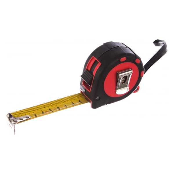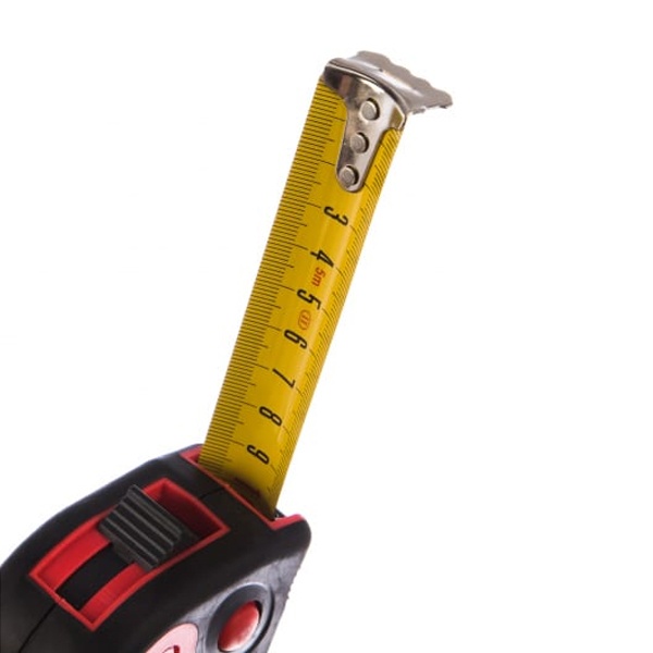 Рулетка оснащена механизмом стопора, который позволяет зафиксировать ленту на нужном расстоянии для удобства работы, а также системой автоматического возврата ленты в корпус, что существенно упрощает процесс работы с инструментом. Внешняя поверхность рулетки имеет прорезиненное покрытие, что делает её приятной на ощупь и предотвращает скольжение в руках, даже если они влажные или покрыты пылью. Также этот корпус защищает внутренние механизмы от грязи, пыли и влаги, увеличивая срок службы инструмента.
