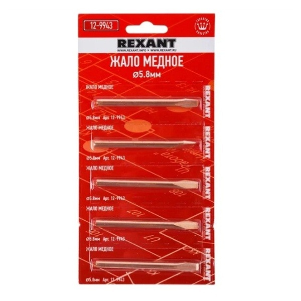 12-9943 Жало медное d5.8 для паяльников Rexant 65 Вт (тип: клин)