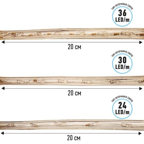 Дюралайт – гибкий световой шнур выполненный из ПВХ-трубки с токопроводящими жилами и светодиодами внутри. Используется для декоративной и архитектурной подсветки объектов. Шнур с двумя проводами внутри называется фиксинг, такой дюралайт используется в режиме постоянного свечения. Дюралайт с тремя и более жилами питания называется чейзинг, светодиоды в чейзинге подключены поочередно к разным жилам, при использовании контроллера это позволяет создавать эффект «бегущей волны» из поочередно загорающихся светодиодов (режим свечения с динамикой). Дюралайт поставляется в бухтах длинами до 100 м, в зависимости от модификации дюралайта модуль резки может составлять от 1 до 6 метров, следуя несложной инструкции потребитель легко может отрезать и подключить отрезок дюралайта нужной ему длины. Каждая бухта уже укомплектована 1 шнуром для подключения, максимальная подключаемая длина 100 м. Дополнительные шнуры можно приобрести отдельно. Температурный диапазон использования -40…+50 °С, монтаж при температуре выше 0 градусов. Дополнительно предлагаются контроллеры для дюралайта фиксинг и чейзинг мощностью от 24 до 340 Вт, что позволяет подключить в одну цепь до 140 метров. При подключении дюралайта к соединительному разъему (муфте) необходимо заизолировать свободное воздушное пространство соединительного разъема (муфты) морозостойким силиконовым герметиком, предотвращающим попадание влаги. Сверху данного соединения необходимо использовать термоусаживаемую трубку