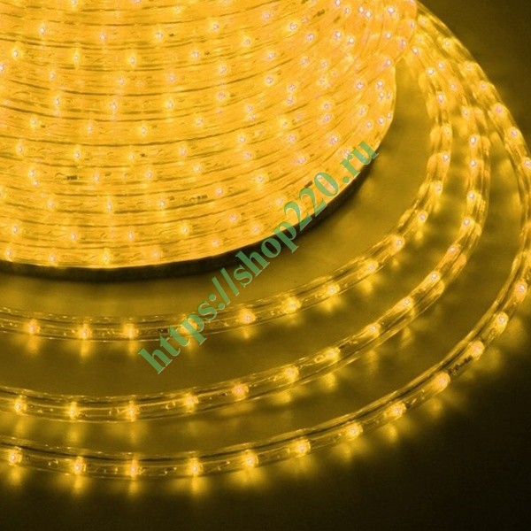 Светодиодный дюралайт 2W желтый 36 LED/2,4Вт/м, эффект мерцания, D13мм, бухта 100м
