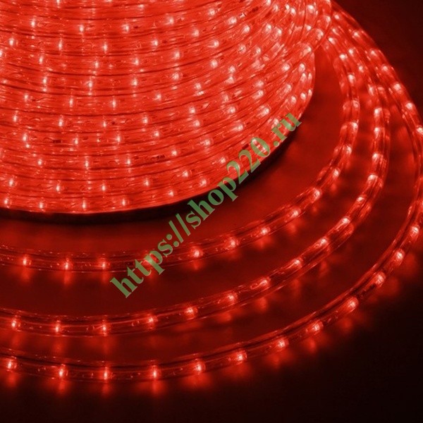 Светодиодный дюралайт 2W красный 36 LED/2,4Вт/м, эффект мерцания, D13мм, бухта 100м