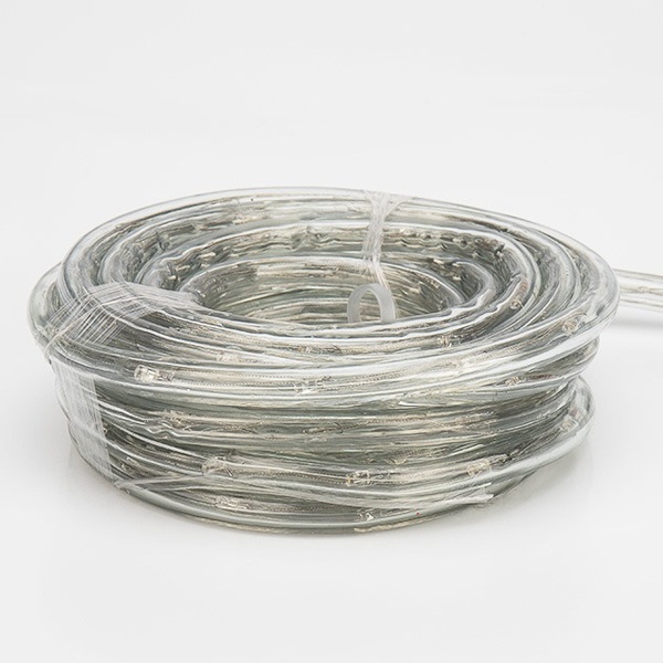 Дюралайт LED теплого белого свечения – это прозрачная герметичная трубка из ПВХ, внутри которой расположены яркие светодиоды – 24 элемента на 1 метр длины. Благодаря герметизации по стандарту IP65, изделие защищено от проникновения пыли и влаги – может использоваться как в помещении, так и на улице. В наборе 20-метровый дюралайт, питающий кабель с диодным мостом.