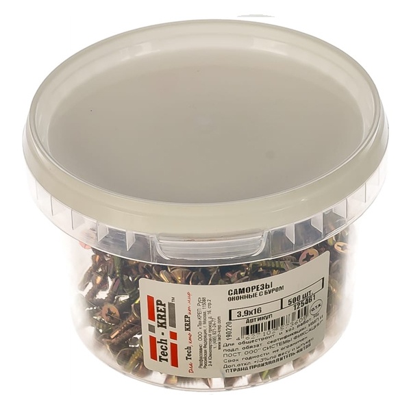 Саморез со сверлом для оконных рам, желтый цинк 3,9x16 мм, 500 штук 125461