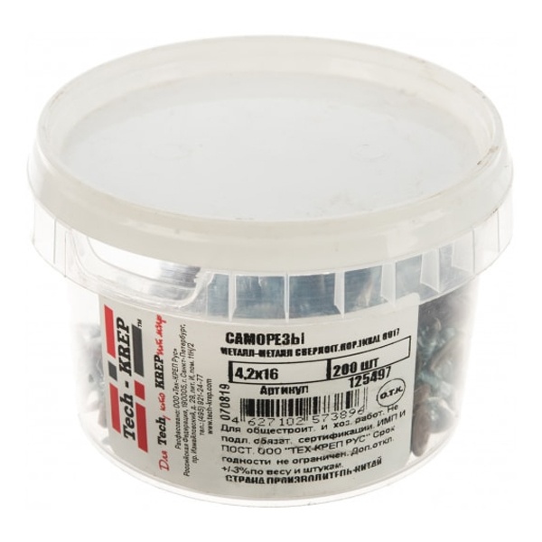 • Саморез по металлу Tech-KREP СММ 4,2х16 со сверлом с прессшайбой темно-коричневый [ведро 200шт]