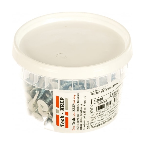 • Саморез по металлу Tech-KREP СММ 4,2х16 острый с прессшайбой белый [ведро 200шт]
