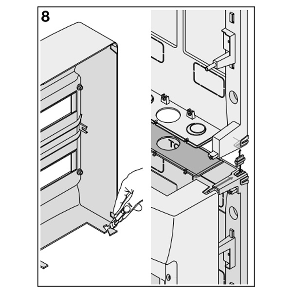 Соединительный элемент позволяет жёстко крепить несколько распределительных щитков в ряд.
