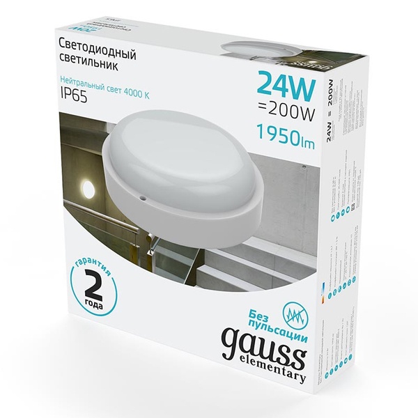 Светодиодные светильники Gauss Elementary предназначены для общего освещения наземных/подземных проходов, проездов, подъездов, лестничных клеток, входных групп, балконов, технических и подсобных помещений, в том числе, с повышенными требованиями к пылевлагозащите до IP65. В данной серии используется драйвер, обеспечивающий стабильную работу светильника при напряжении сети от 160В до 260В. Доступны модели с микроволновым датчиком движения.