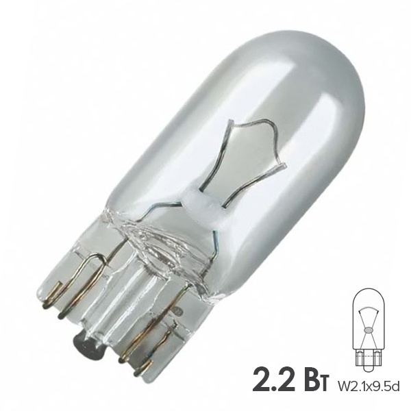 Автомобильные лампы накаливания от известной компании Philips из серии Standart представляют собой обычные источники освещения, которые применяются в стоп-сигналах, боковых указателях поворота, задних фарах, а также в качестве подсветки номера. Ввиду своей маломощной конструкции величиной 2.2 Ватта они также используются для внутреннего освещения салона и индикатора открытой двери. Изделия поставляются в картонной коробке в количестве 10 штук и устанавливаются в легковой автотранспорт или мотоциклы с бортовым напряжением 12 Вольт. Такой тип источников света относится к категории W2.2W с цоколем W2.1x9.5d. По сути, они считаются бесцокольными, так как их контакты, к которым подключается питание, представляют собой две проволоки, выведенные с нижней сплюснутой части колбы и загнуты по разным сторонам. Лампы излучают световой поток мощностью 13.5 Люменов и характеризуются увеличенным сроком службы, который достигает 1800 ч работы. С ними обеспечивается безопасность и уверенность на дороге, так как устройства обладают высоким качеством изготовления, проходят тщательное тестирование, контроль и сертификацию.