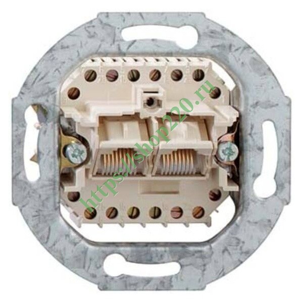 Механизм информационно-телефонной розетки скрытой установки с двумя разъемами RJ11/45, Rutenbeck, с распорными лапками 130 104 21