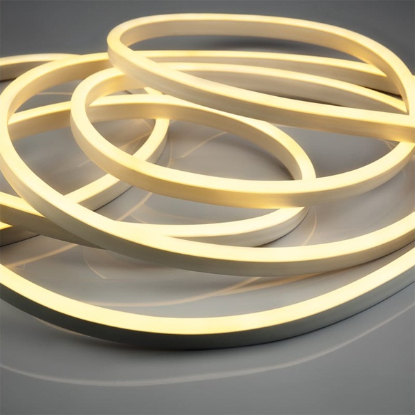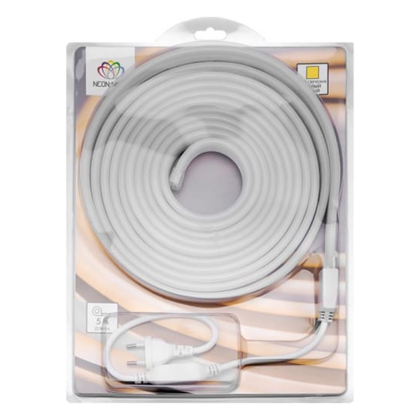 Гибкий неон - световой шнур выполненный из матовой белой ПВХ трубки с токопроводящими жилами и светодиодами внутри. Используется для декоративной и архитектурной подсветки объектов, так же широко распространён в украшении интерьера. Шнур имеет два токопроводящих провода внутри и используется в режиме постоянного свечения.