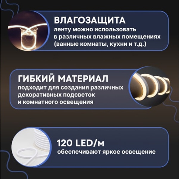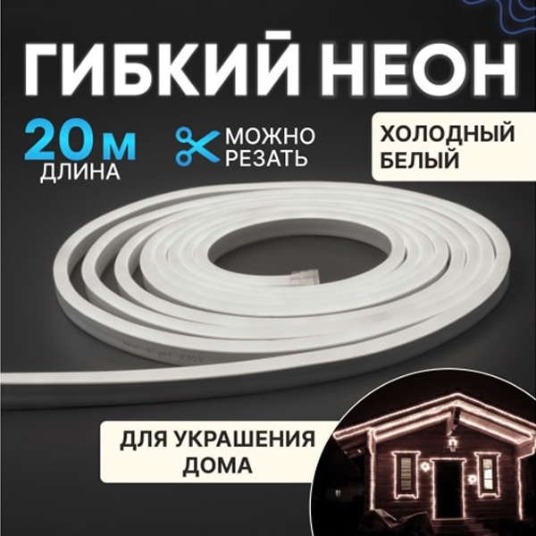 Гибкий неон - световой шнур выполненный из матовой белой ПВХ трубки с токопроводящими жилами и светодиодами внутри. Используется для декоративной и архитектурной подсветки объектов, так же широко распространён в украшении интерьера. Шнур имеет два токопроводящих провода внутри и используется в режиме постоянного свечения.