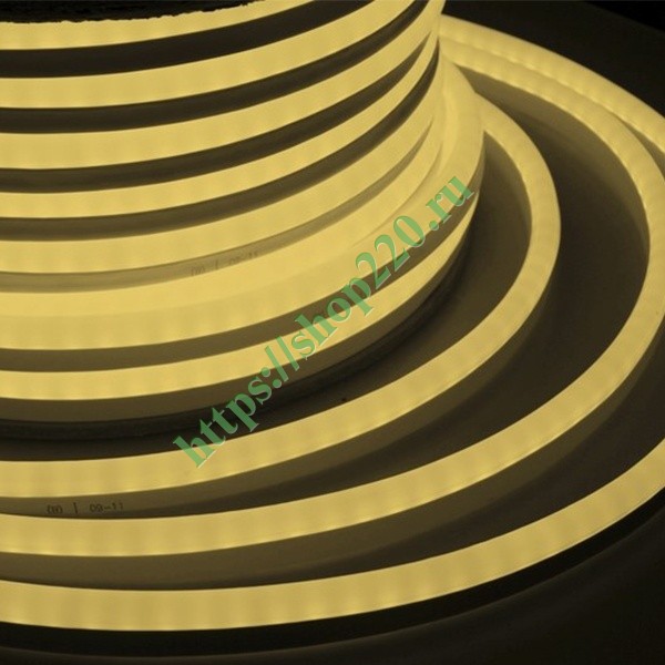 Гибкий неон - световой шнур выполненный из матовой белой ПВХ трубки с токопроводящими жилами и светодиодами внутри. Используется для декоративной и архитектурной подсветки объектов, так же широко распространён в украшении интерьера. Шнур имеет два токопроводящих провода внутри и используется в режиме постоянного свечения. Тепло-белый гибкий неон поставляется в бухтах длиной 50 м, имеет модуль резки 0,9 метра, следуя несложной инструкции легко можно отрезать и подключить гибкий неон нужной длины. Каждая бухта уже укомплектована 5-ю шнурами для подключения, максимальная подключаемая на 1 шнур длина 50 м. дополнительные шнуры можно приобрести отдельно. Температурный диапазон использования от -40 до +50 С, монтаж необходимо производить при температуре выше 0 градусов.