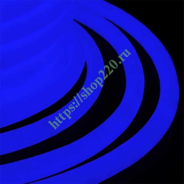 Гибкий неон - световой шнур выполненный из матовой синей ПВХ трубки с токопроводящими жилами и светодиодами внутри. Используется для декоративной и архитектурной подсветки объектов, так же широко распространён в украшении интерьера. Шнур имеет два токопроводящих провода внутри и используется в режиме постоянного свечения. Данный вид гибкого неона имеет угол свечения 360 градусов благодаря равномерному расположению светодиодов внутри ПВХ трубки. Гибкий неон поставляется в бухтах длиной 50 м. Следуя несложной инструкции легко можно отрезать и подключить гибкий неон нужной длины. Температурный диапазон использования от -45 до +35 °С, монтаж необходимо производить при температуре -25 до +35 °С. Допустимый диаметр изгиба составляет 3 см.