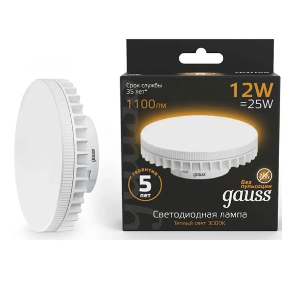 Светодиодная лампочка таблетка акцентного освещения Гаусс, мощностью 12 Ватт, с цоколем GX70, теплый белый свет 131016112