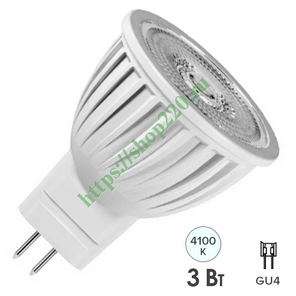 Светодиодная лампочка акцентного освещения Гаусс, мощностью 3 Ватта, с цоколем GU4, нейтральный белый свет 132517203