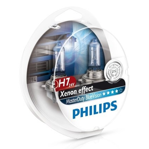 Высококачественные галогенные лампы производителя Philips линейки MasterDuty BlueVision обладают стильным голубовато-белым светом, близким к свету ксеноновых ламп. Свет ровный, без бликов, очень яркий, благодаря чему водитель намного лучше и четче видит дорожную обстановку, имея возможность своевременно засечь опасность и предотвратить ДТП. Они относятся к типу Н7 с цоколем Px26d и предназначены для ближнего, дальнего и переднего противотуманного света фар грузовых автомобилей с бортовым напряжением 24 Вольта. Колба этих ламп выполнена из кварцевого стекла с усиленной оболочкой, что позволяет лампе выдерживать повышенную вибрацию, а голубое покрытие позволяет им излучать контрастный стильный белый свет. Достоинствами этих осветительных приборов являются яркий свет, а также отличное соотношение эксплуатационных характеристик и срока службы. Лампы этой серии – правильный выбор для тех, кто хочет выделяться. Высокая контрастность источников света обеспечивает улучшенный обзор ночью и в неблагоприятных погодных условиях. В комплект входят 2 лампы, которые упакованы в пластиковый бокс. При транспортировании их следует предохранять от механических повреждений.