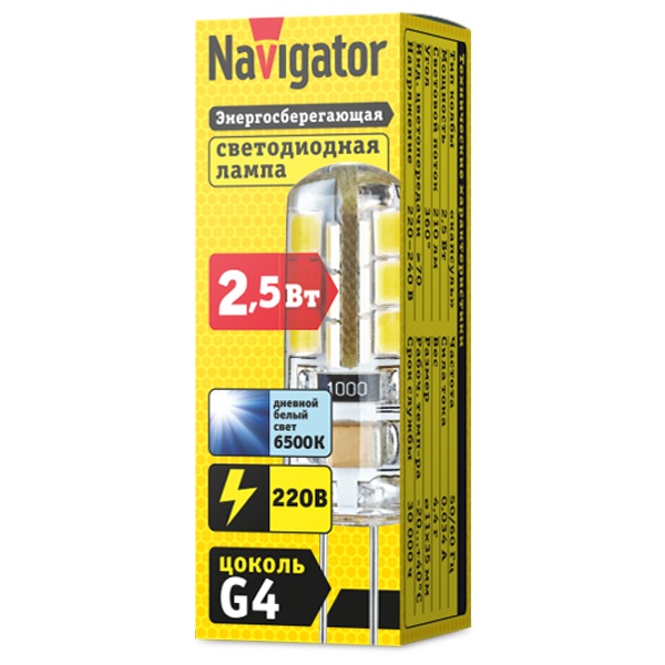 Светодиодная капсульная лампочка Навигатор, мощностью 2,5 Ватта, с цоколем G4, холодный дневной свет 14009