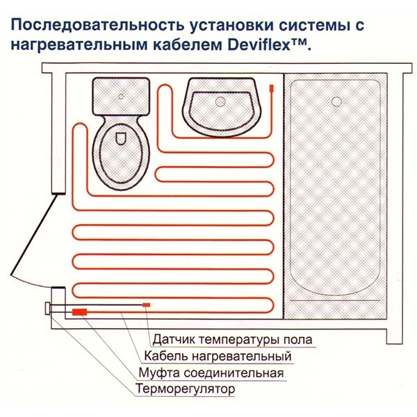 Терморегулятор Devi с датчиком температуры приобретается отдельно.