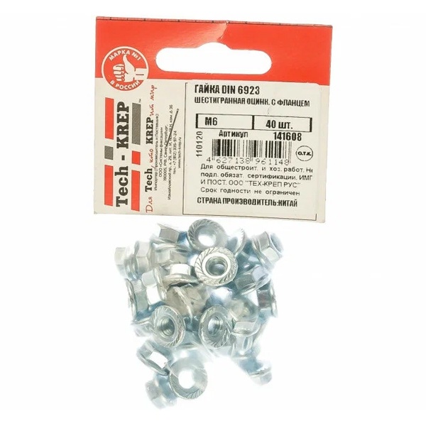 Оцинкованная гайка с насечкой, препятствующей откручиванию М6, 40 штук 141608