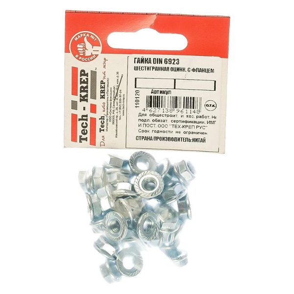 Оцинкованная гайка с насечкой, препятствующей откручиванию М6, 200 штук 141611