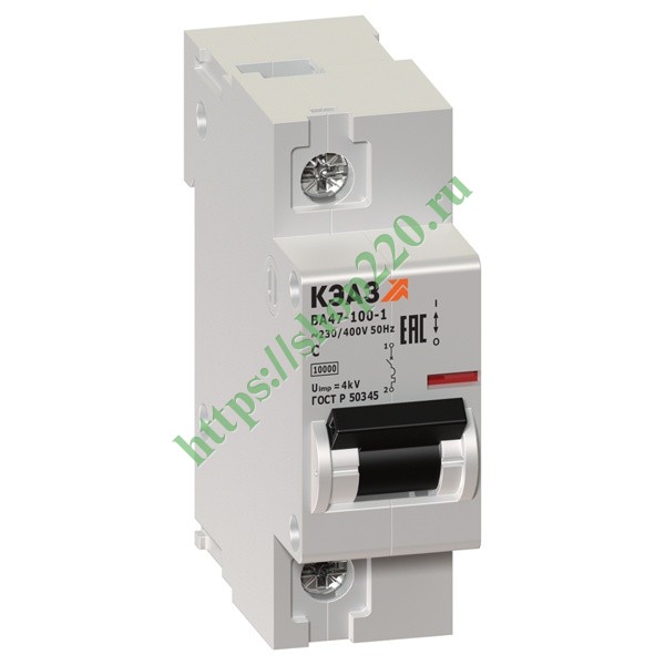 Автоматический выключатель ВА47-100 1P 100A C 10кА AC 1,5м (ВА47-100-1С100-УХЛ3) КЭАЗ (автомат электрический)