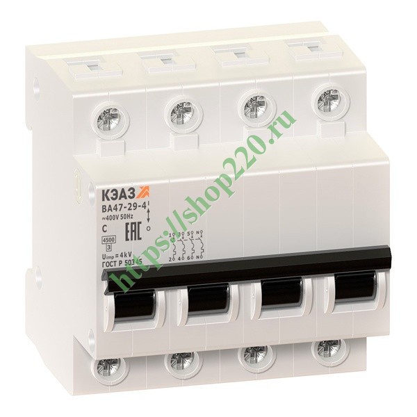 Автоматический выключатель ВА47-29 4Р 63А 4,5кА характеристика C (ВА47-29-4C63-УХЛ3) КЭАЗ (автомат электрический)