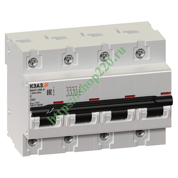 Автоматический выключатель ВА47-100 4P 80A C 10кА AC 6м (ВА47-100-4С80-УХЛ3) КЭАЗ (автомат электрический)